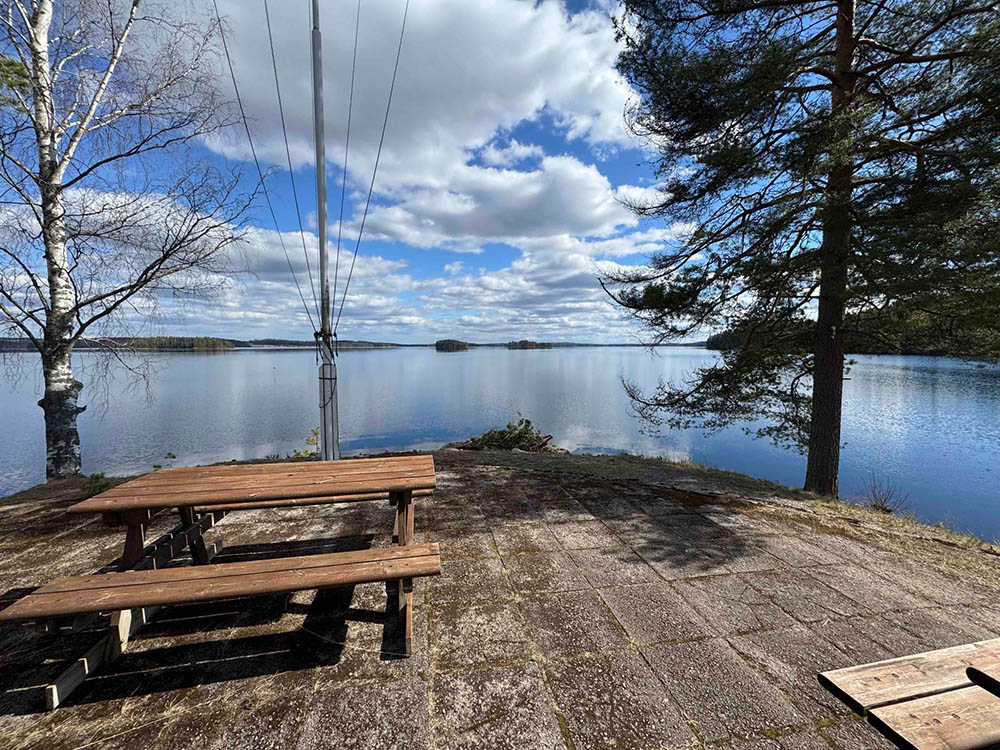 Täällä, Karpinniemen kärjessä, luonto avaa sylinsä kokonaan. Vesi on hiljaa, mutta puhuu – horisontti ei ole raja, vaan mahdollisuus. Tämä paikka on kuin luonnon viimeinen piste, jossa mieli saa päästää irti. Takana ovat metsä, mäki ja kallio – nyt kaikki aistit voivat levätä.
