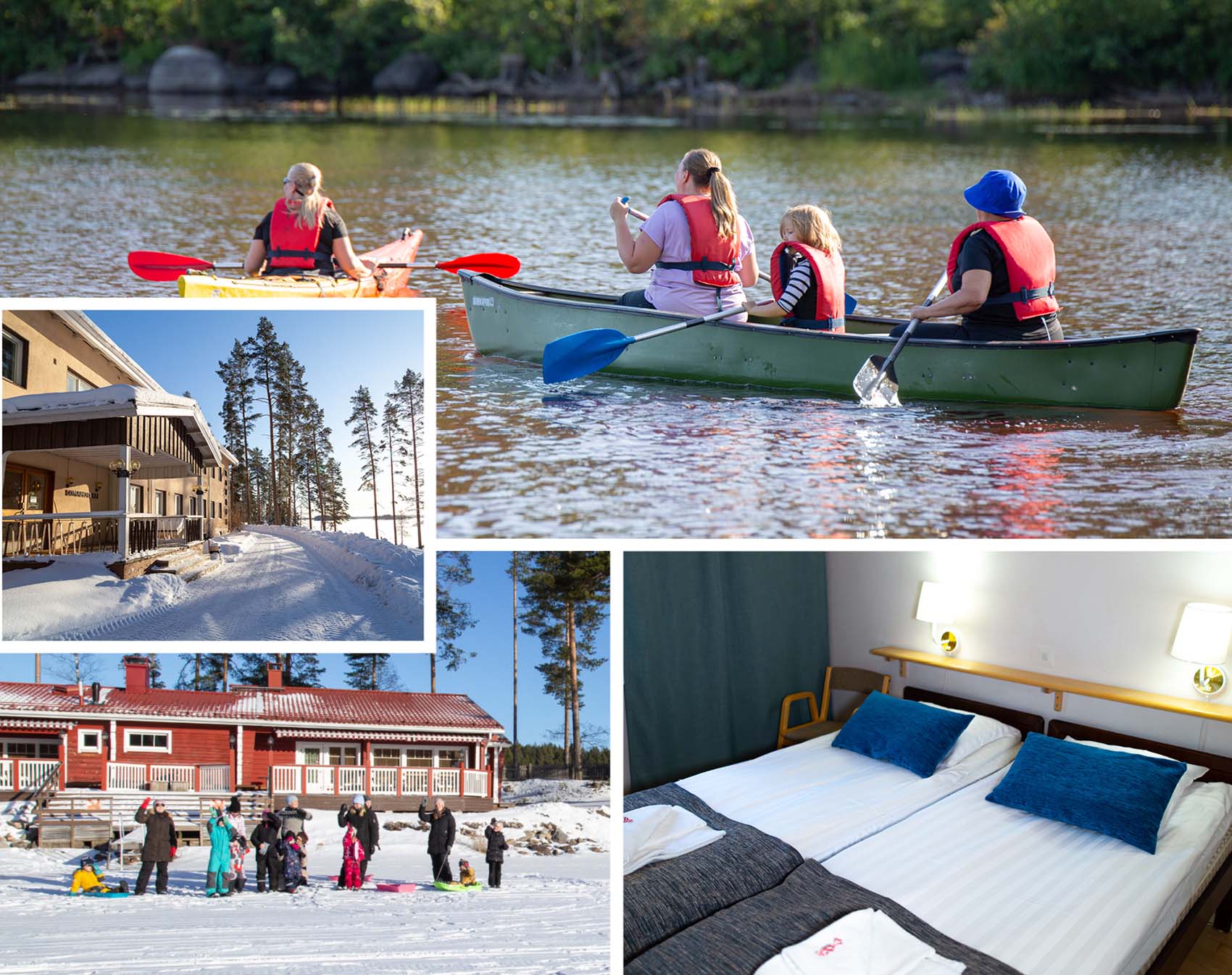 Keurusselkä Resort sijaitsee kolmen kansallispuiston keskellä ja tarjoamme monipuoliset mahdollisuudet leirikouluohjelman hyvään suunnitteluun. Meiltä löytyvät upeat puitteet erätaitojen ja luonnossa liikkumisen harjoitteluun. Alueella on oma ranta sekä laajoja metsäpolkuja ja laavuja, jotka kutsuvat retkeilemään. Voit myös nauttia erilaisista aktiviteeteista, kylpylän poreista sekä rantasaunan löylystä!