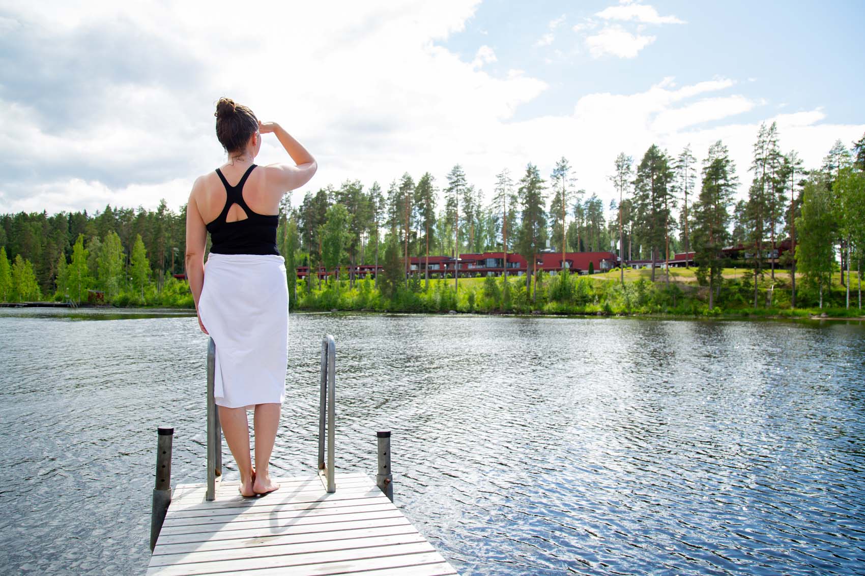 Vilvoittelu ihon höyrytessä saunan terassilla virvokkeiden kanssa – ja varpaiden kastelu vilpeässä vedessä, ovat jo kokemus itsessään!