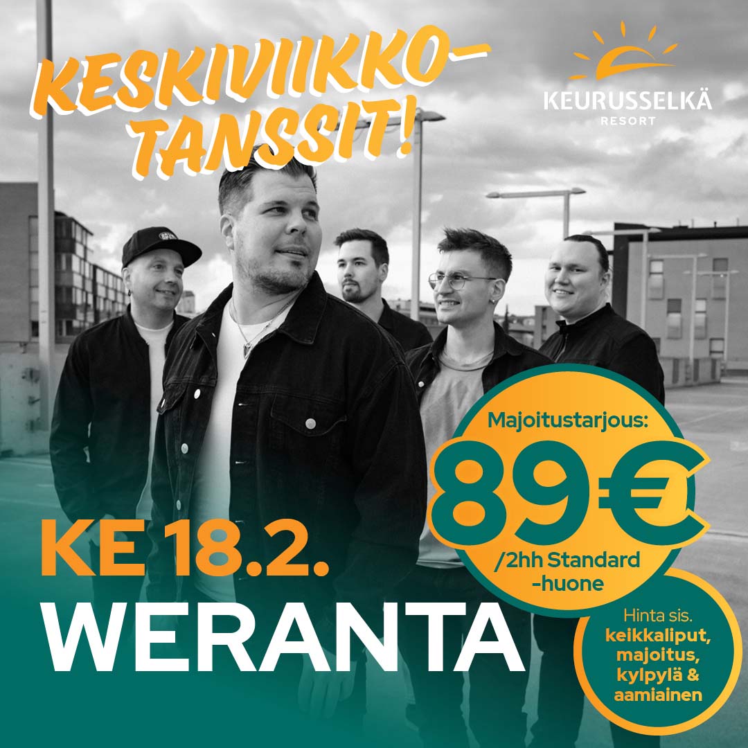 Kevään energisin viikonloppu viikonloppu vietetään Keurusselällä livemusiikin, hyvän fiiliksen ja rentoutumisen merkeissä. Varaa valmis bilepaketti ja nauti viikonlopusta huolettomasti.